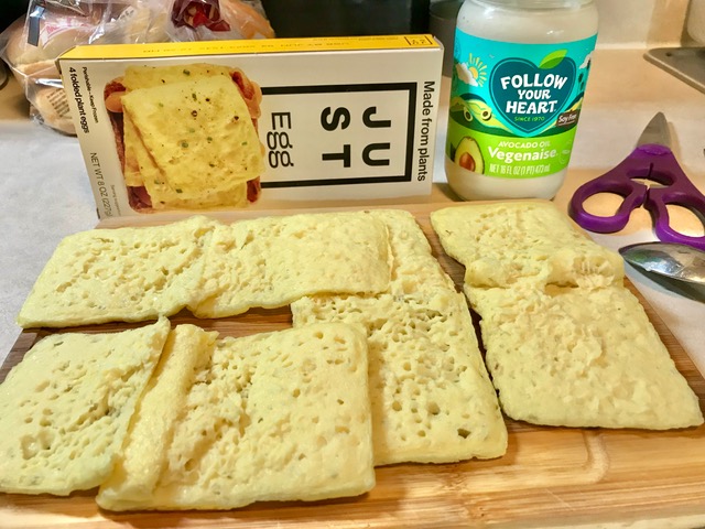 I can’t say enough good things about this animal-free egg product. Best ALT egg on the market. It cooks and textures like an omlet. Toast it, microwave it or pan-fry it. Four to a box. Freezes well. 100 calories per fold, which is one serving.