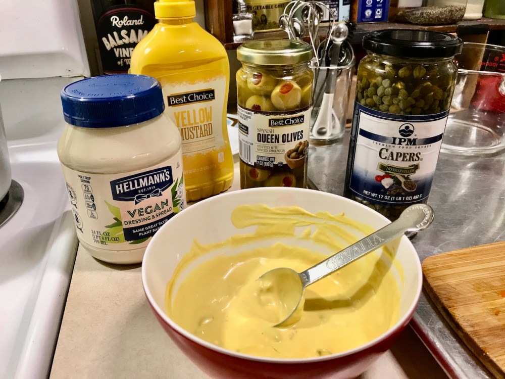 2 T. prepared yellow mustard – I used a new brand called BEST CHOICE, cheaper than the cheap, however better than any plain mustard ever, what makes it fluffy is a mystery, but it squirts like a mustard mousse, so it must be in the way it’s processed; all mustard-making companies should try this and see the difference