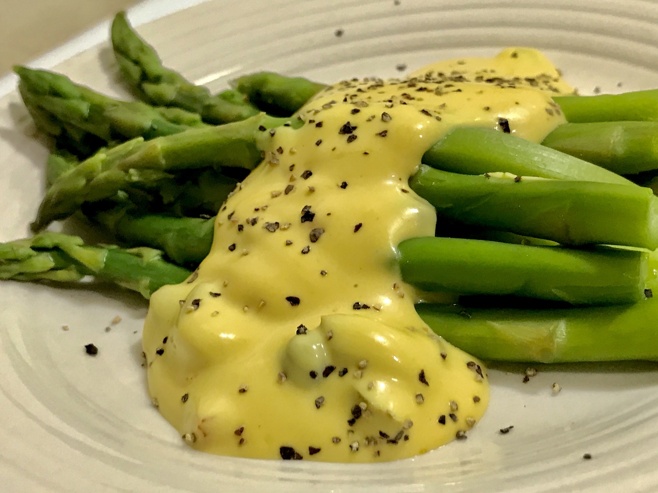 To serve: On each small plate spoon a little Holland Sauce, then top with half the asparagus spears, then top with remaing sauce. Serve.