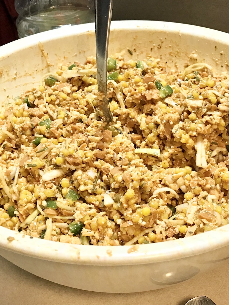 Antipasto Mac Salad Elbows cooked rice-style combined with seasoned, cooked tofu cubes with Kalamata olive, plant pepperoni, roasted peppers plus the fresh of celery, tomato and snowy onion. Seasoned with basil, tarragon, garlic and tossed with a multi-condiment dressing! I added some crushed saffron threads to mine, but it by no means requires it! MakesContinue reading "Antipasto Mac Salad"