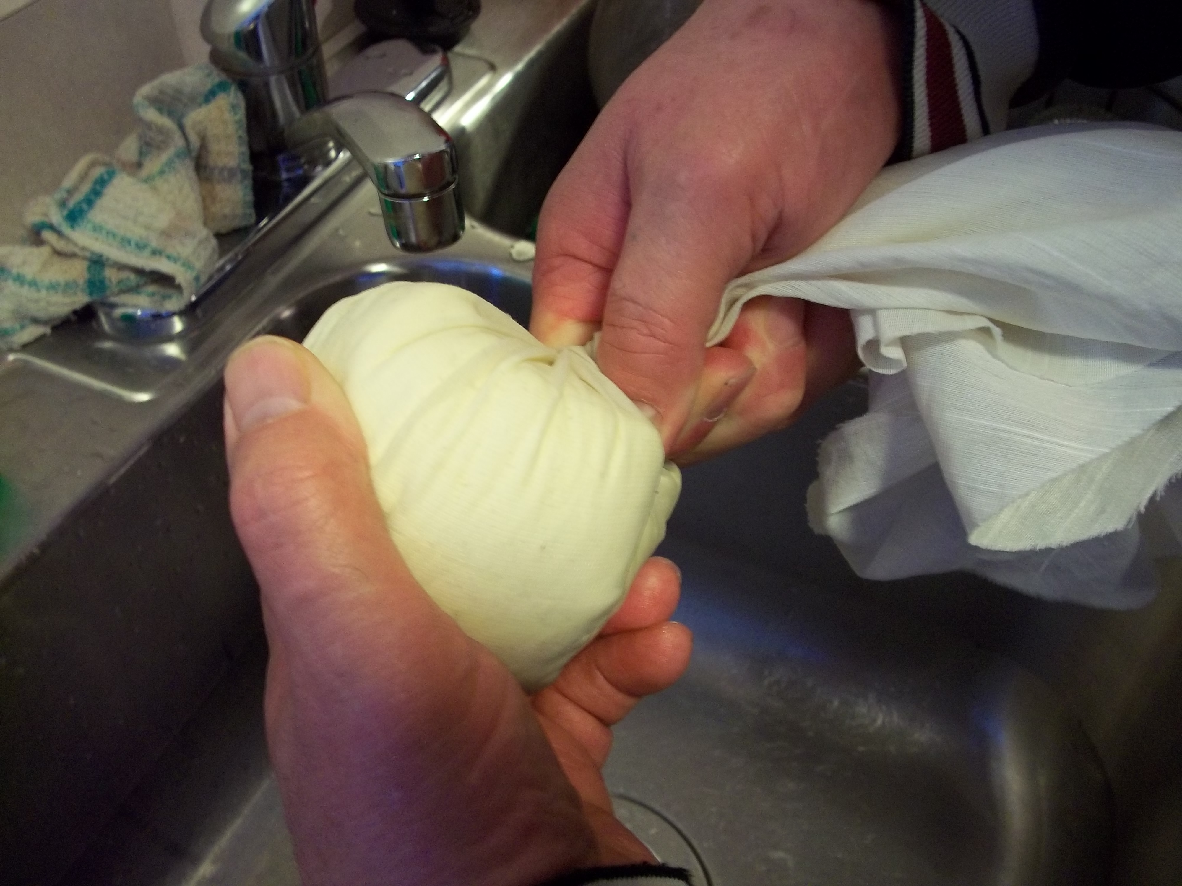 For many recipes you’ll want to squeeze the liquid out of the block of tofu before using it in those recipes. For years I used paper towels. One day when out of paper towels, I cut a round out of a sheer white curtain that was quite a bit larger than the block of tofu. I placed the tofu in the middle, brought the fabric up around the tofu till it hung like a ball from a rope. Then I twisted it round and round as the twist in the fabric squeezed the tofu into a ball, then I twisted as hard as I could to extract all of the liquid. It worked perfectly, and I’ve been using my handy little tofu cloth ever since.